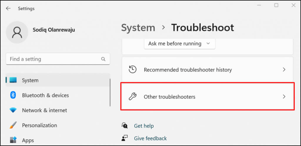 - In Windows 11, go to Settings > System > Troubleshoot.