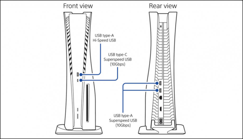 Plug the cable’s USB-A connector into any USB type-A port on the rear or front of the console. Afterward, insert the USB-C end into the controller.