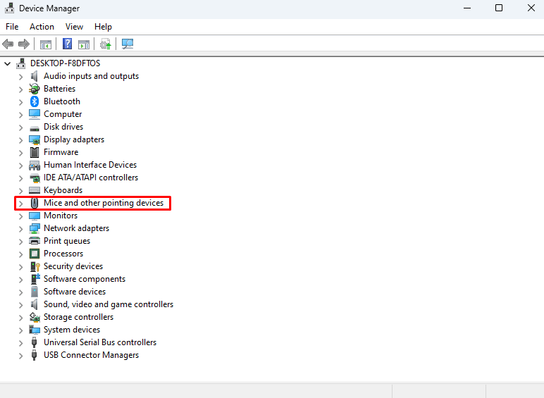- Double-click Mice and other pointing devices to view the peripheral devices.