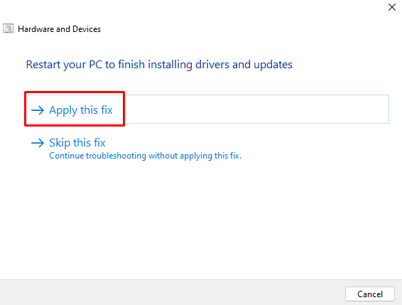 - If the troubleshooter suggests any resolutions, select Apply this fix to execute it.
