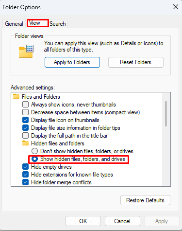 - Click Hidden items in the ribbon to ensure all the files are displayed. If you are a Windows 11 user, click the three dots, then go to Options > View > Check Show hidden files, folders, and drives.