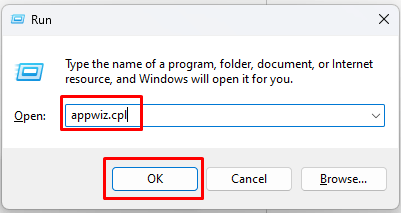 - Type appwiz.cpl and click the OK button. This will bring up Programs and Features.