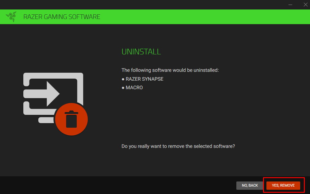 - Razer will ask you if you really want to remove their software. Select Yes, Remove.