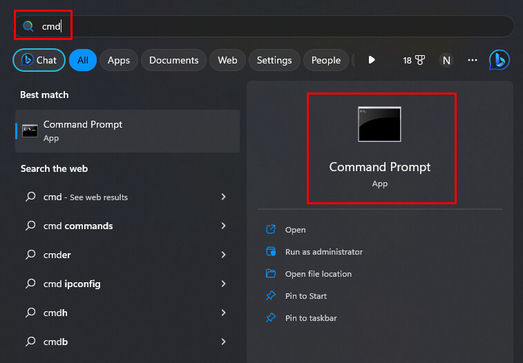 - Click a magnifying glass on your Windows 10/11 taskbar. This will open the search bar. Type cmd and select Command Prompt.
