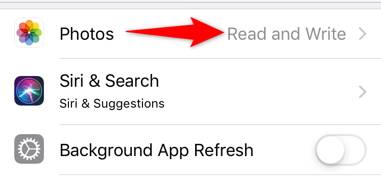 - Review the permissions you’ve given to the app. Make sure the Photos permission is set to Read and Write.