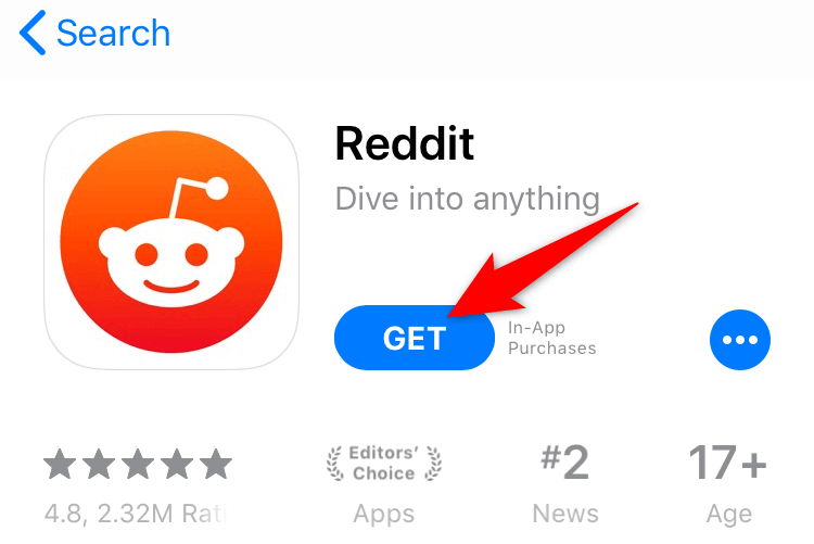 - Open the App Store, search for Reddit, and tap Get.