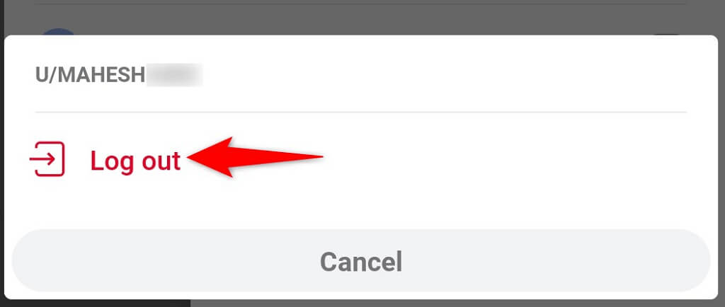 - Select the right-arrow icon next to your currently logged-in account. * Choose **Log out** in the menu that opens.