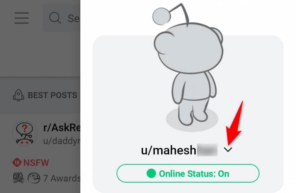 - Tap the down-arrow icon next to your username.