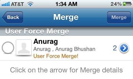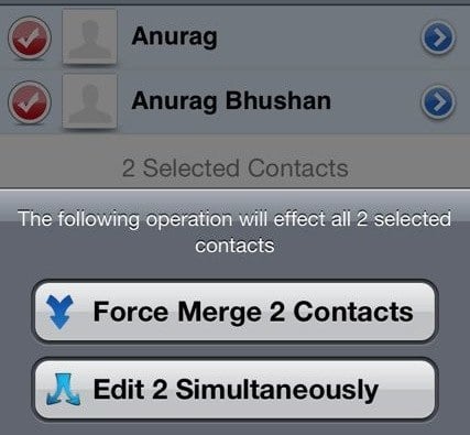 Go ahead and tap on the Force Merge 2 Contacts button.
