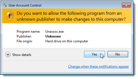 The utility does not require installation. Simply unzip the file you downloaded and double-click on the Unassoc.exe file to run the utility.