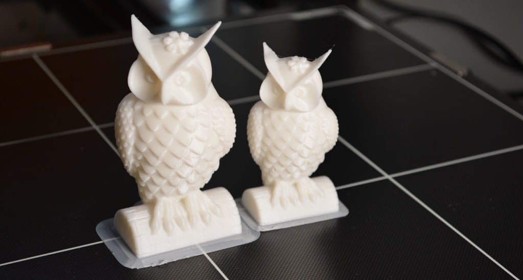For the first print, we used the test file provided by Anycubic. Appropriately, the owl is about twice the print volume of the owl test print that comes with the smaller Kobra. Given the bowden setup (which makes sense for a printer this size), we were surprised that the ears on the owl turned out so well.