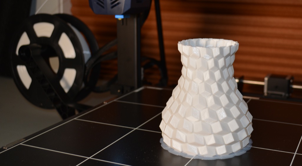 Next, we printed a vase with a large, flat base with a 0.2mm layer height. Removing prints from the glass bed is certainly not as easy as removing prints from smaller, flexible beds, but it’s not a deal-breaker either. We didn’t have any adhesion problems. The prints didn’t release when the glass bed cooled, which is what we expected and hoped for.