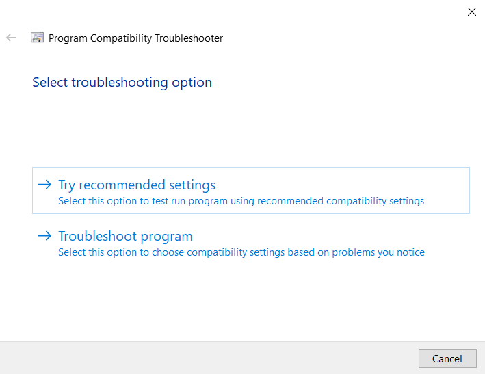- Once the **Program Compatibility Troubleshooter **opens up, you are again presented with two options. You can **Try recommended settings** or **Troubleshoot program. **If the first option doesn’t run the program correctly for you, select the second one to actually diagnose the issues.