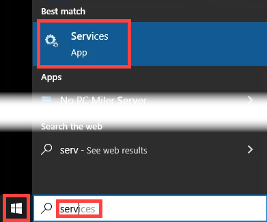 - Select the **Start **menu and search for Services. Open Services when you find it.