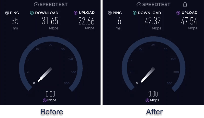 It seems like a simple thing, however, there was a greater than 25% increase in download and upload speeds based on our before and after speed testing.
