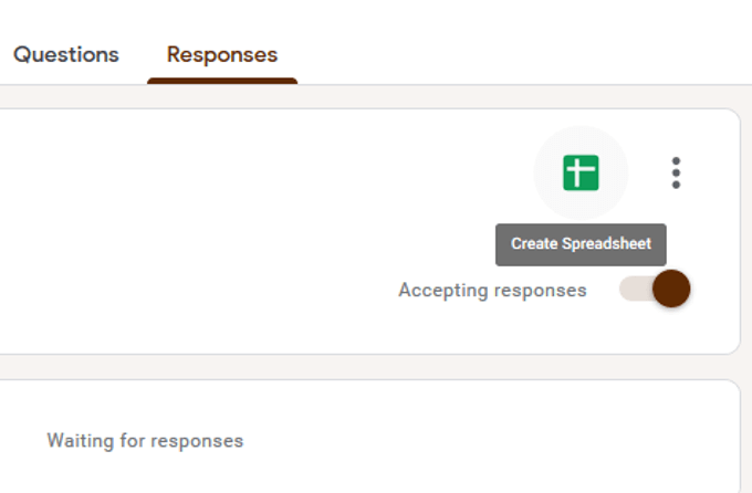 You can also create a spreadsheet from the response tab by clicking on the green plus sign on the top right side and click Create a New Spreadsheet.