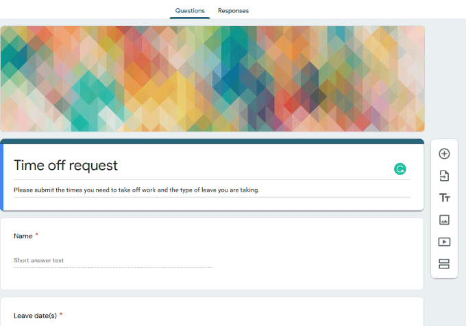One of the benefits of using Google Forms for time off requests is the ability to create a spreadsheet from submitted forms.