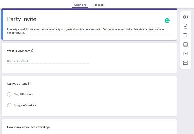 If you are having a family or a business party, use the Google Party Invitation template to create a form.
