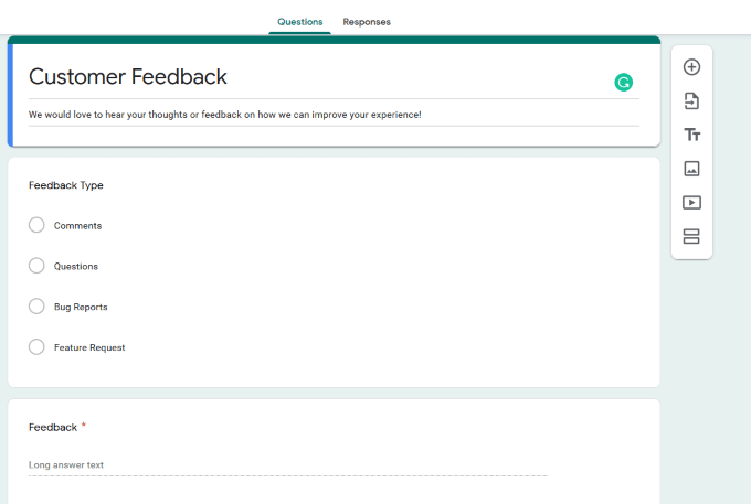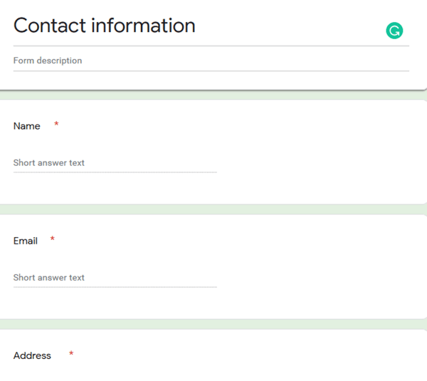 Creating a contact form from Google’s form template is relatively simple. The customizable interface enables users to drag and drop form elements.