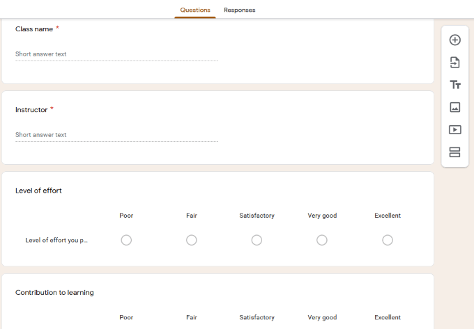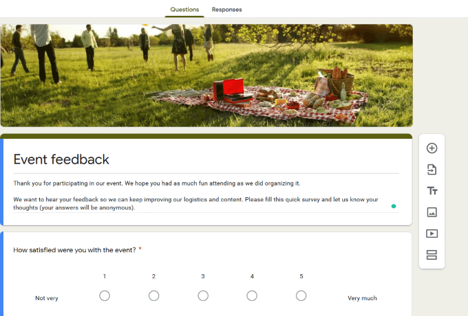 Some of the questions on the Google Form template may be appropriate to your event, while others may not. To change an item, click on it to expand your options.