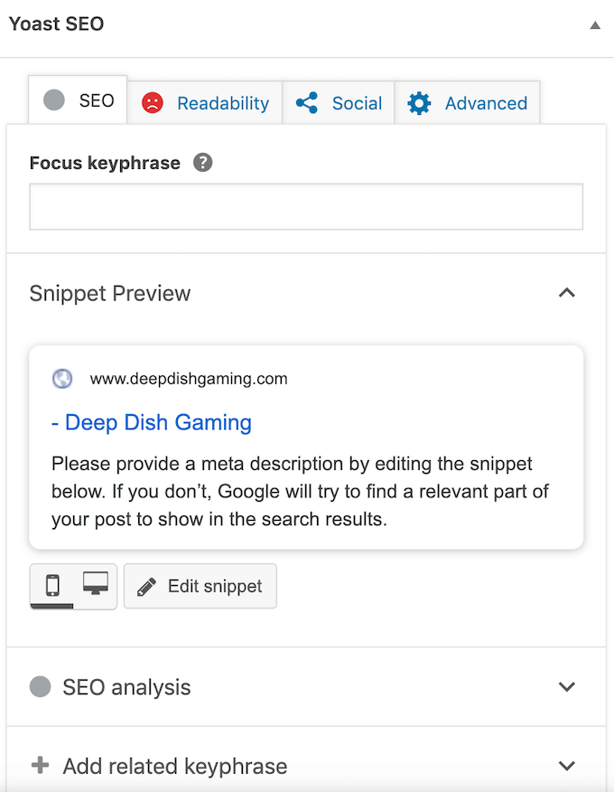 Perhaps most useful is the SEO analysis that Yoast performs. It indicates whether a post has been properly optimized or not, and then provides a list of major problems, areas that could use some improvement, and areas where the post succeeds.