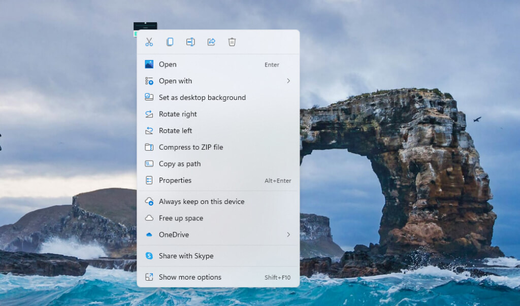 To get the full context menu (the one similar to Windows 10), you’ll need to click on Show more options or press Shift + F10.