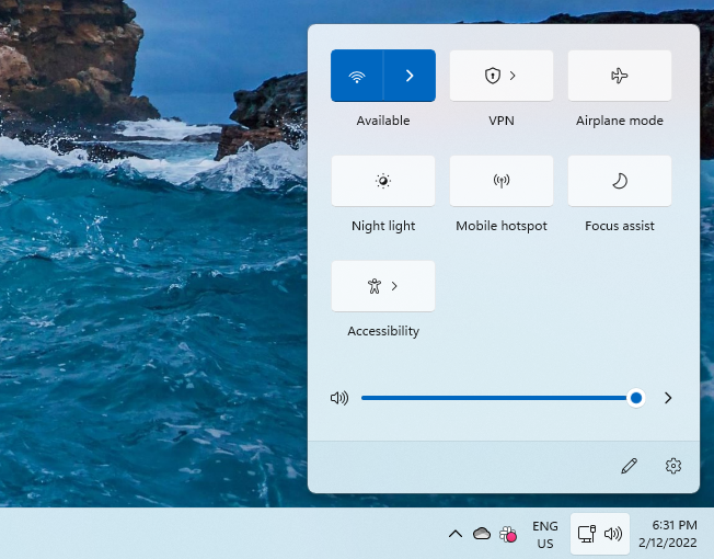 The network and sound icons in the taskbar are now clubbed. When you click on either of them, you’ll see a whole bunch of options, unlike previous versions of Windows (including Windows 7, 8, and 10) where you could just click the network icon and see a list of wired and WiFi networks.