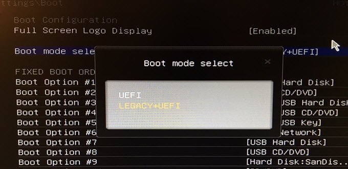 It’s worth noting that you may or may not have the option for secure boot on your computer. Also, if you switch from LEGACY+UEFI to just UEFI and your computer doesn’t boot, just go back into the BIOS and change it back.