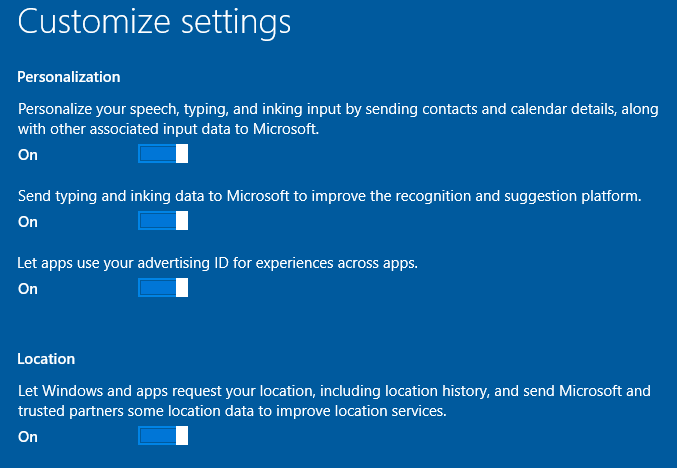 This is much easier to do when you first install Windows because you can click Customize and disable everything all at once. Obviously, if you can’t reset or reinstall Windows, you can manually change the settings.