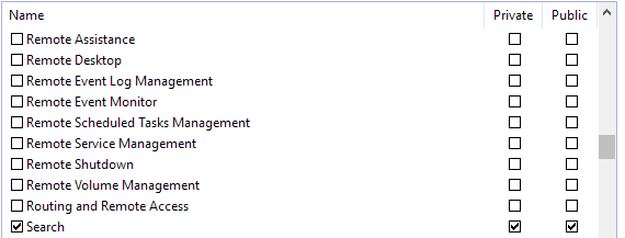 It’s also a good idea to uncheck anything that has “Remote” in the name like Remote Assistance, Remote Desktop, etc. Unless you connect to your computer remotely, you can uncheck both the Private and Public columns for all of these programs/services.