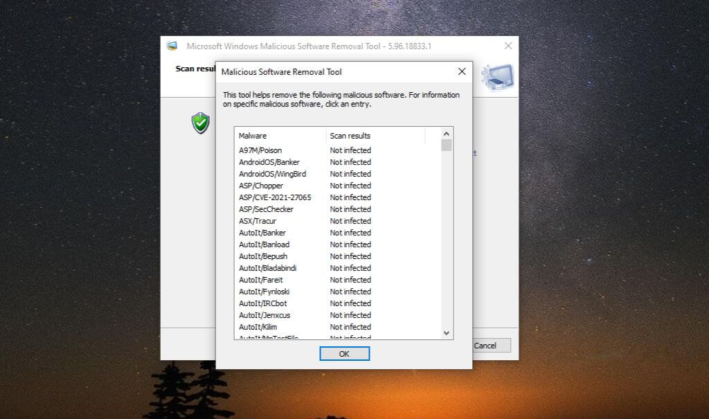 While it’s a good idea to run this tool if you find yourself in any of the situations listed above, make sure to follow this up by installing and running a scan with an antivirus app afterward as well. This should catch anything the Malicious Software Removal tool might have missed.