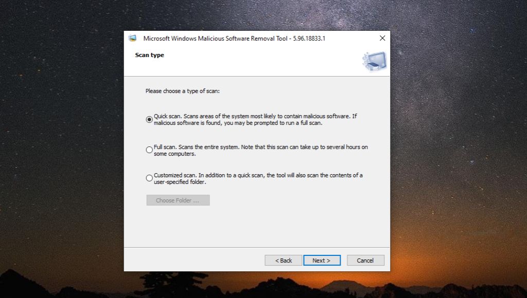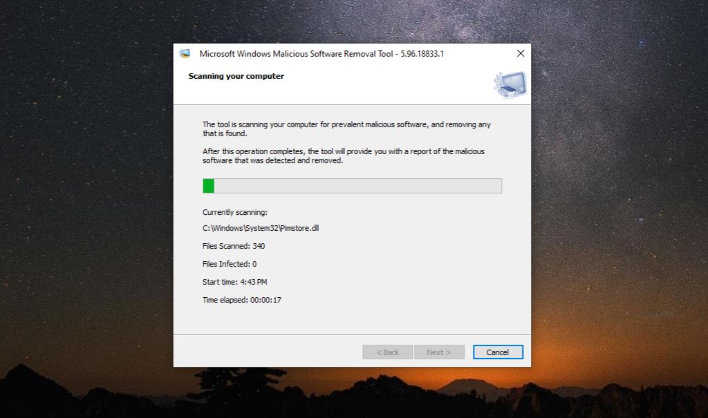 Manually Running the Malicious Software Removal Tool