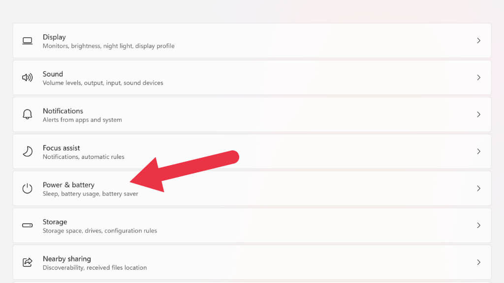 - Under System, Select Power & Battery.