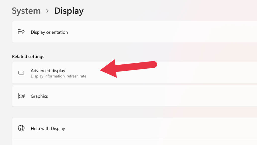 - To reduce the refresh rate, select Advanced Display from the Display window where you changed the resolution.