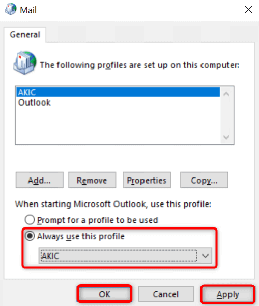 If fixing the data file didn’t resolve your problem, your current Outlook user profile might be corrupted. This is the most common reason you get a 0x8004010f error in the app. In this case, you can create and use a new profile in Outlook to fix your issue.