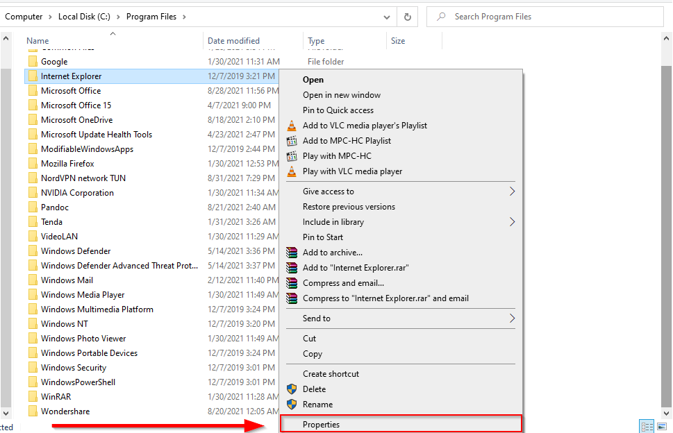 - Right-click on the folder and select Properties.