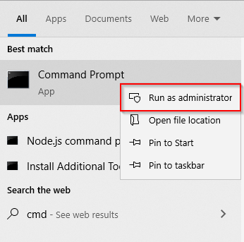 - Search for cmd in the Start Menu.