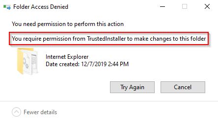 Deleting or modifying files or folders owned by TrustedInstaller may prevent your Windows installation from running properly. Think of it as another safeguard that prevents even an administrator account from deleting core Windows files. However, sometimes you may need to fix or modify corrupt system files, for which you’ll require TrustedInstaller permission.