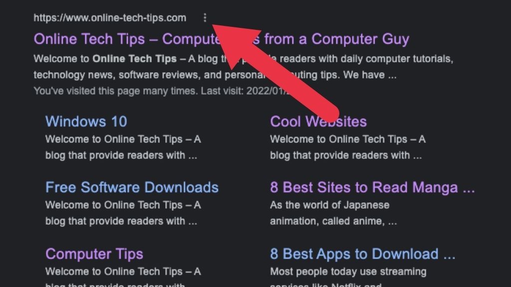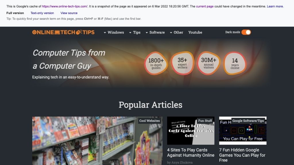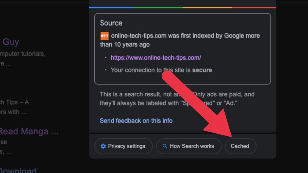 It’s easy to see the cached version of a page using Google, just look for the three dots to the right of the result header and select it.