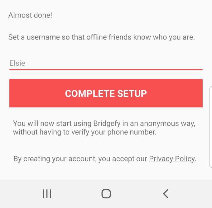 - Complete the set up by adding a username (preferably one your contacts know you by) and tap Complete setup.