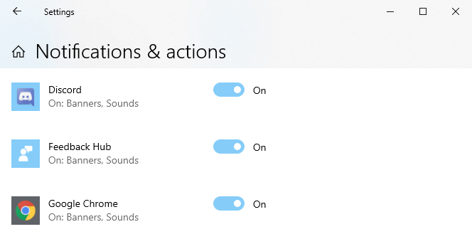 Just a bit further down, you’ll see that you can control notifications from specific apps. Not just Microsoft apps either, as you can see Discord and Chrome in the list.