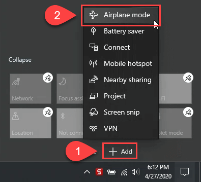 If you want to add an action, click on the **Add **button and then choose an action. In this example, let’s choose Airplane Mode.