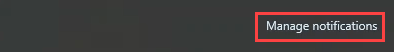 At the top right corner of the Windows Action Center, click on Manage notifications.