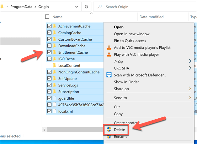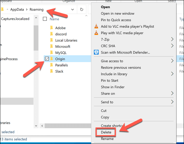 - Type **%AppData% **in the address bar in File Explorer next. Right-click the **Origin** folder and select **Delete**.