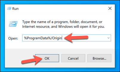 - In Run, type **%ProgramData%/Origin** and select **OK**.