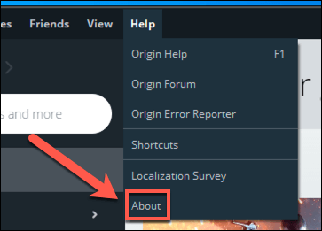 - When you re-open Origin or EA Desktop after enabling (or re-enabling) app updates, the client will check for new updates and install them manually. You can then check the app version you’re running by selecting **Help **> **About** in the Origin client. In EA Desktop, select the **menu icon **> **Help **> **About**.