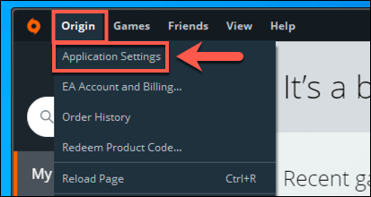 - To check for Origin updates manually, open the Origin client. From the top menu, select **Origin **> Application Settings. If you’re using the new EA Desktop, select the top-left **menu icon **> Settings instead.
