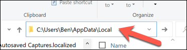 - Select the address bar and replace **Roaming** with** Local** in File Explorer.