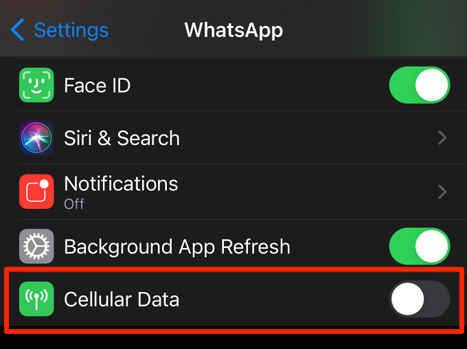 Go to Settings, select WhatsApp, and toggle on Cellular Data.