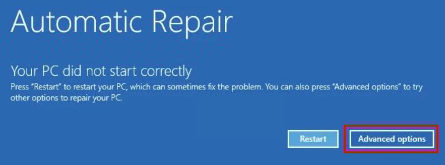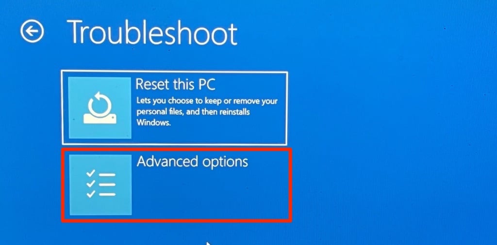 - Select Advanced options to enter the Windows Recovery Environment (winRE).